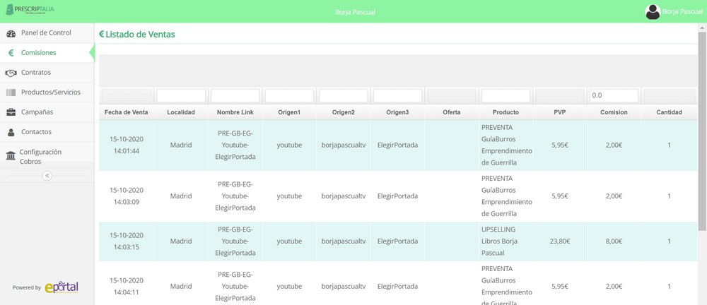 Con tu Usuario/Clave podrás ver todas las ventas realizadas con tu código, el dinero que ya puedes liquidar, los pagos ya realizados…